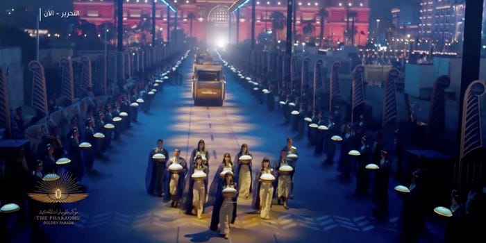 Twenty-two pharaoh mummies walked the streets of Cairo on Saturday evening in a stunning royal procession from the Egyptian Museum on Tahrir Square to the new National Museum of Egyptian Civilization (NMEC) in Fustat. The event marked the official launch of NMEC.