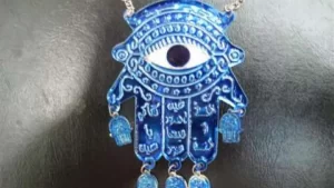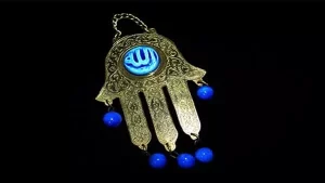 The Khamsah’s history is as intricate as its design. Known as the Hand of Fatima in Islamic tradition, named after the prophet Muhammad’s daughter—and the Hand of Mary in some Christian contexts, it serves as a potent emblem of divine protection. Its name derives from the Arabic word “khamsah” and the Hebrew “hamesh,” both meaning five, referencing its five fingers. Despite its religious connotations, the Khamsah transcends specific faiths, standing as a universal symbol against malevolence. Traditionally, the Khamsah is worn as an amulet or displayed in homes, its eye motif believed to deflect negative energy. This belief is closely tied to ancient superstitions about the Evil Eye—a curse thought to be unleashed through envious glances. The eye, often depicted in striking blue to counteract this curse, transforms the Hamsa into a protective talisman.
